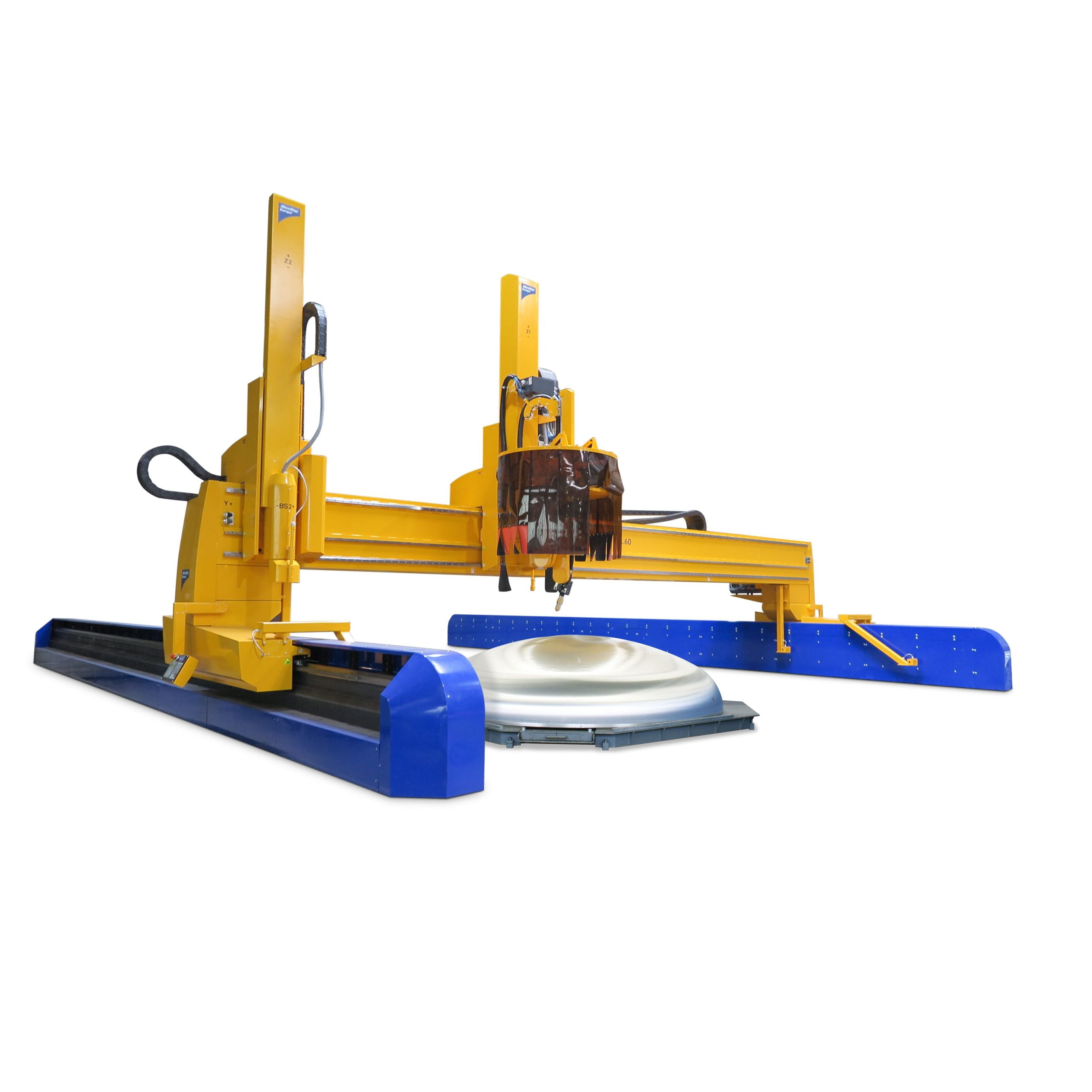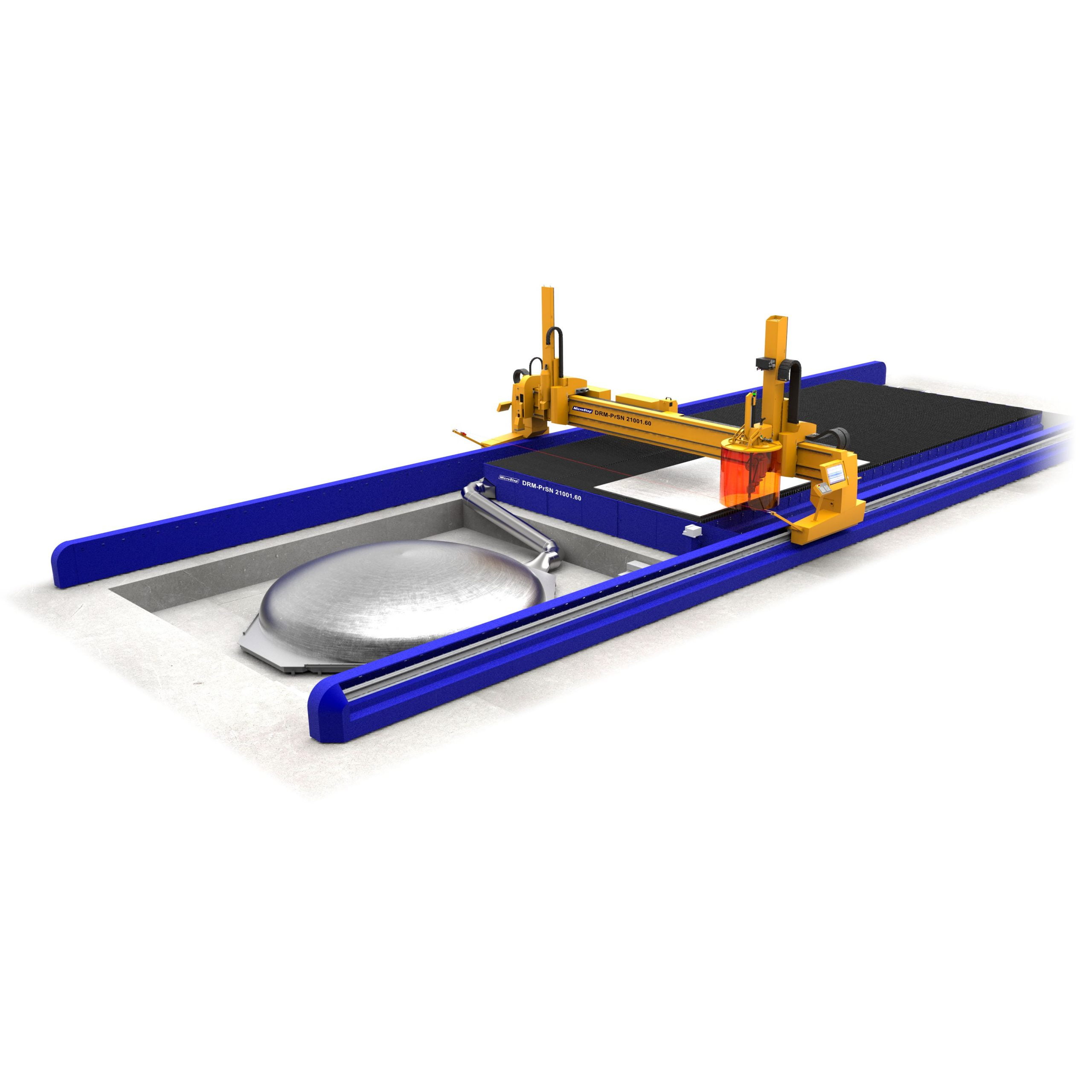 DRM este o masina CNC de taiat cu plasma si oxigaz pentru aplicatii grele, cum ar fi taierea domurilor, a foilor de tabla si a tevilor. Portalul robust permite operarea fara vibratii a echipamentelor grele cum ar fi capul de taiere oxigaz cu trei torte sau capul de taiere cu plasma rotator 90° cu posibilitatea unei curse de 1500 mm pe axa Z pentru a taia forme 3D si alte echipamente speciale.