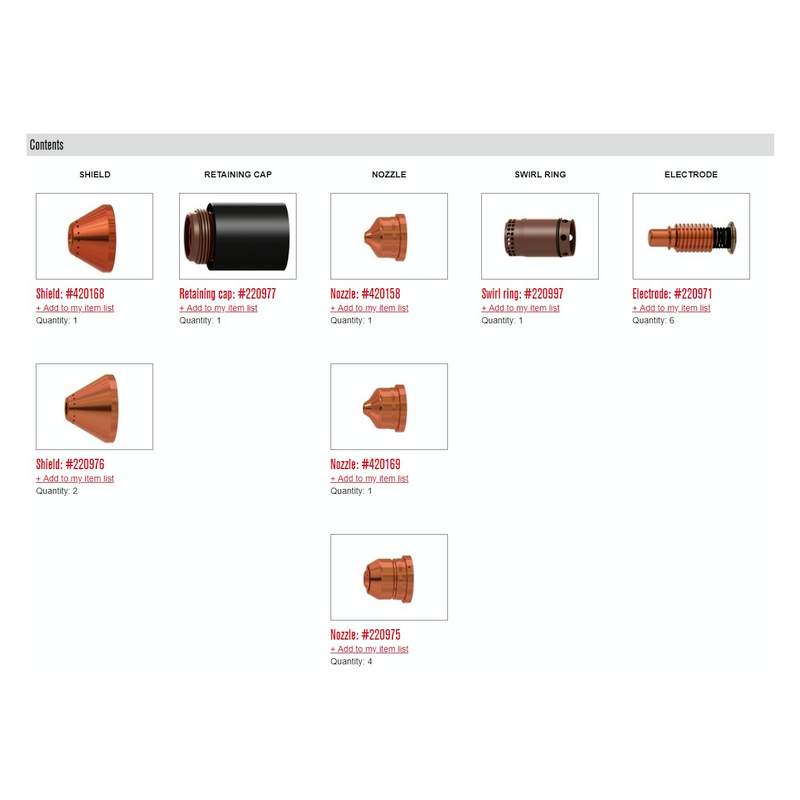 Kit-ul Hypertherm Powermax 125 conține: