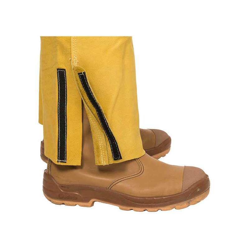 Cu o rezistenta la rupere si uzura pantalonii de piele cu pieptar Golden Brown, au grosimea pielii de minim 1mm si o banda metalica flexibila la interior pentru a lua si pastra forma pantofului. Cusaturile sale duble sunt rezistente la rupere si temperaturi inalte, iar capsule si elementele metalice sunt izolate electric pentru siguranta utilizatorilor. Sunt realizate din din piele spalt de vita calitatea A, pentru un confort si o rezistenta sporita.