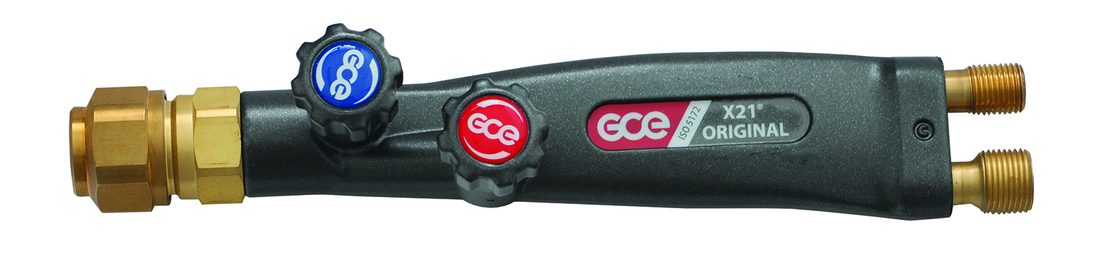 GCE X21® Original cu capacitate mare de sudare, taiere, lipire, incalzire si indreptare. X21® Original este un dispozitiv combinat de sudare cu gaz si taiere cu gaz pentru lucrul manual. Este un arzator proiectat pe baza cerintelor stricte prevazute de standardul EN ISO 5172.