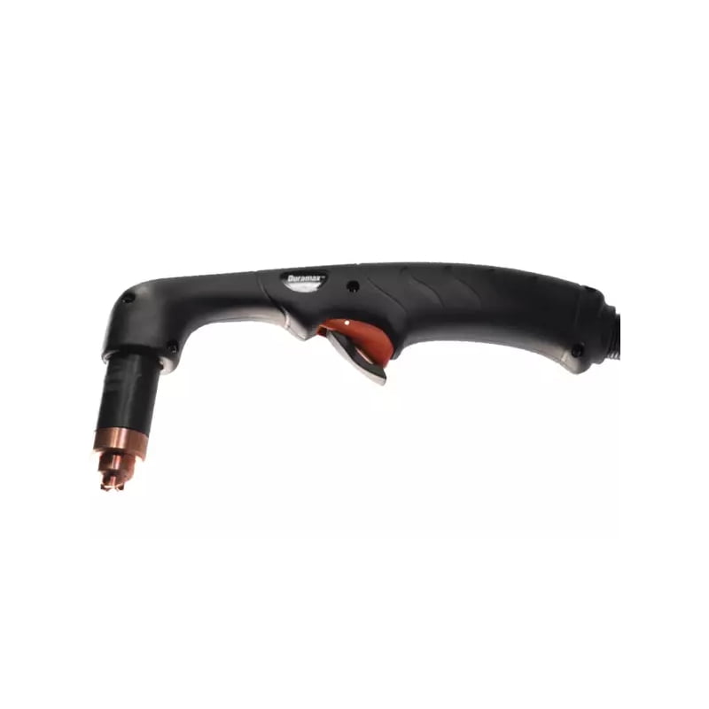 Pistoletul Duramax 75 se utilizeaza in lucrari de taiere manuala cu plasma la unghi de 75 de grade. Pistoletul are pe maner un tragaci cu piedica, care trebuie ridicata pentru a actiona arcul electric.